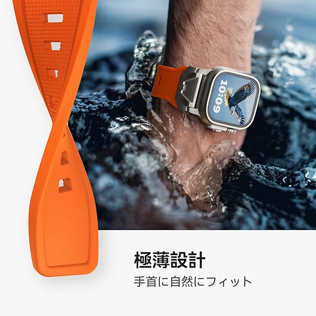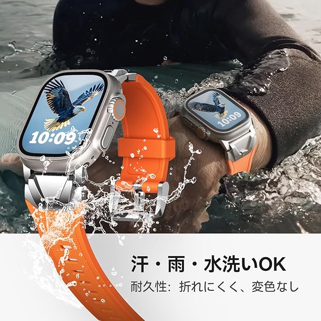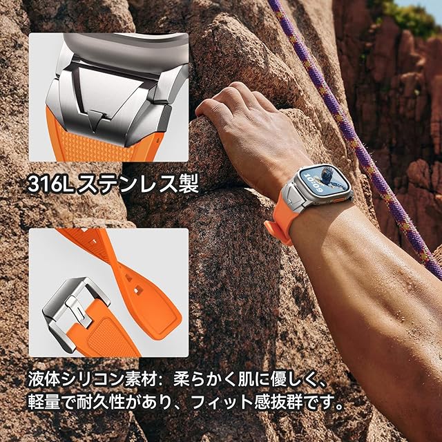 【対応機種】本製品「アップルウォッチ ステンレス+液态硅胶(リキッドシリコーン)バンド」は、コンパチブルApple Watch ウルトラ2/1 およびSeries 10/9/8/7/6/5/4/SE2/SE/6/5/4/3/2/1に対応しており。対応する手首サイズは135mmから220mmです。ご注意:購入前に、Watchのモデルとサイズを確認してください。
