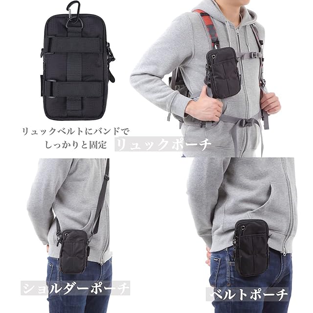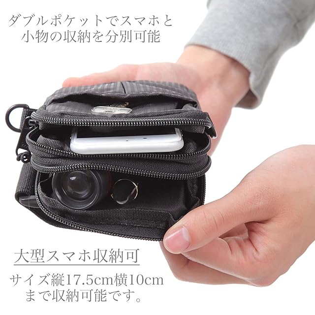 ✅ ダブルポケットでスマートフォンと小物を分けて収納できます。フロントポケットにもスマホ収納可能。