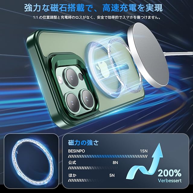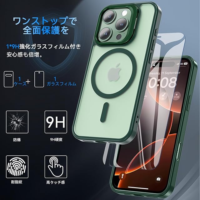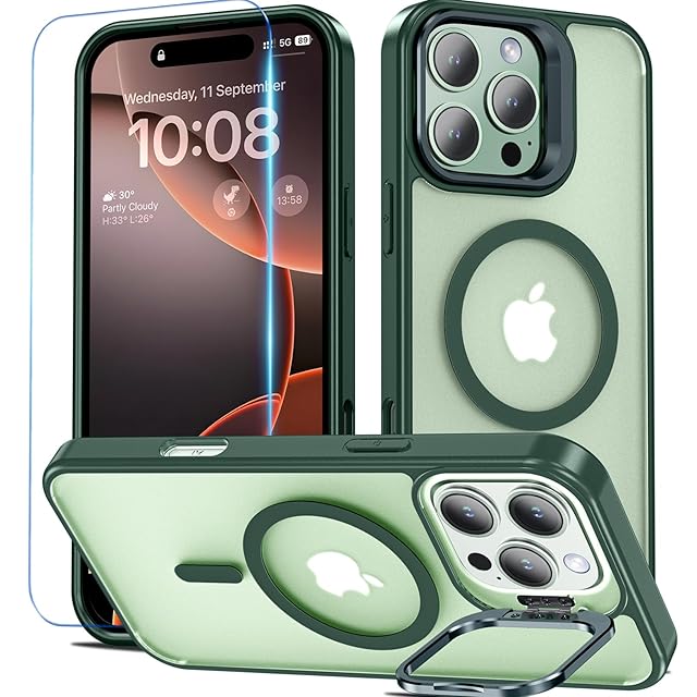 BESINPO iPhone 16 Pro Max ケース [ガラスフィルム付き・MagSafe対応・スタンド機能] アイフォン16プロマックス ケース 縦横両対応 調整可能 半透明 黄ばみなし 指紋防止 いphone16promax ケース 米軍規格 耐衝撃 耐久性 マグネット搭載 マグセーフ対応 ストラップホール iPhone 16 Pro Max ケース 6.9インチ対応 グリーン | TREND DESIGN 家電専門店