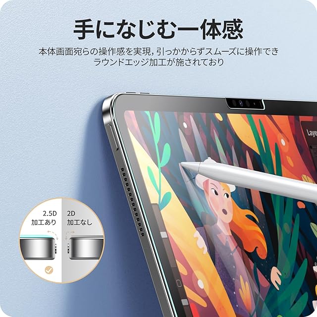 高品質日本製素材 : 9H硬度を持つガラスにハードコーティングが施されることにより、外部からの衝撃をフィルムが吸収し、画面へのダメージを最低限まで抑えました。♥ケースと干渉せず:ipadケースに対応させるため、ガラスフィルムはスクリーンよりやや小さいように設計されています。スクリーンにもっと密着することもできます。ケースとの干渉を気にする必要はありません。