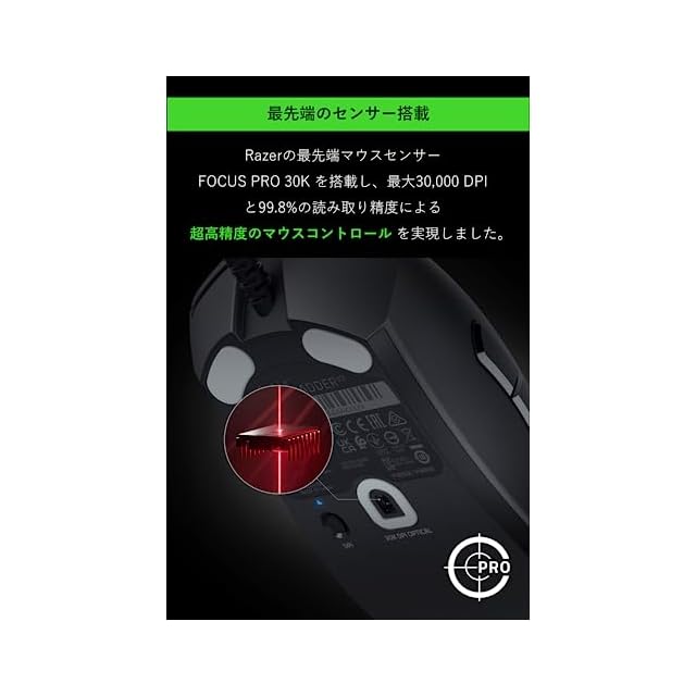 【Razer Focus Pro 30K オプティカルセンサー】前モデルのセンサーより正確なトラッキング/進化したAI機能/ガラス表面にも対応と、究極までに洗礼されたセンサーとなっており、より高い精度でのマウス操作が可能になっています