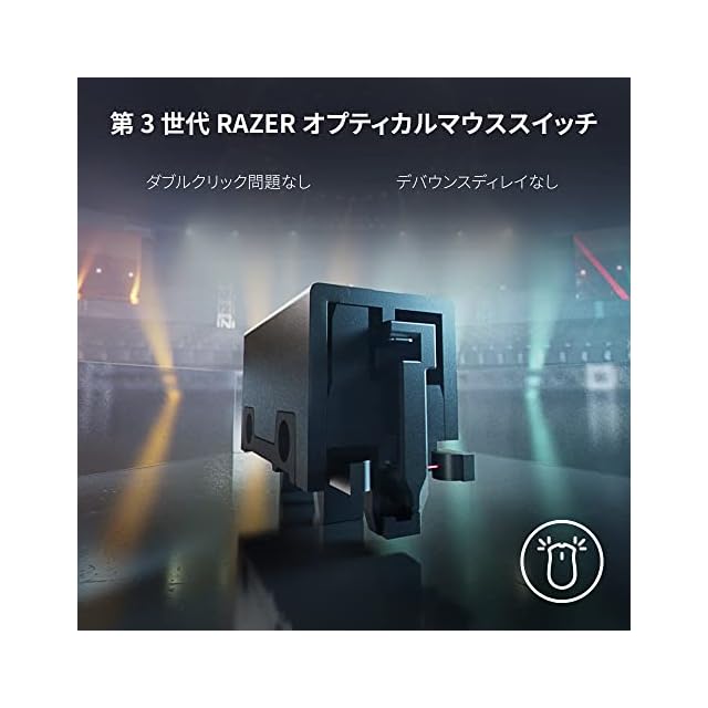 【第3世代Razerオプティカルマウススイッチ】二重クリックの問題を排除しながら、耐クリック回数を 9,000 万回に改善し、デバウンスディレイなしのわずか 0.2ms のアクチュエーションを備えたこのマウスは、e スポーツ向けに設計された信頼性とスピードを発揮します。