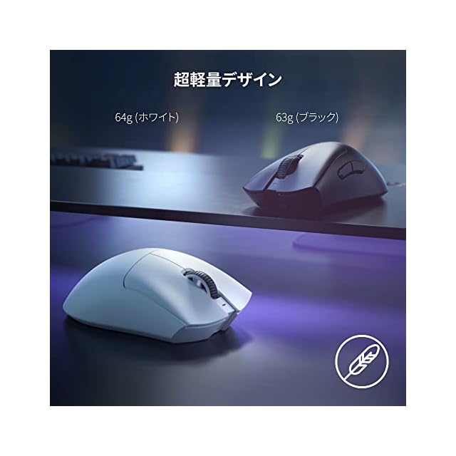 【63gの超軽量デザイン】前モデルのRazer DeathAdder V2 Pro よりも25%以上軽量化。表面に穴をあける事無く極限まで最適化された本体重量は確かな剛性と共に、64g以下の軽量化を達成。正確かつ、高速なマウス操作を実現可能な本体設計となっています。