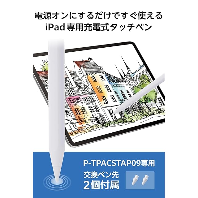 エレコム タッチペン 【iPad 7/8/9/10、 11インチ(A16)、Pro 11/12.9/13インチ、 Air3/4/5/11・13インチ、 mini5/6に対応】 iPad専用ペンシル 急速充電 パームリジェクション 傾き検知 20分でフル充電 磁気吸着 USB-C充電 ホワイト P-TPACSTAP09WWH | TREND DESIGN 家電専門店