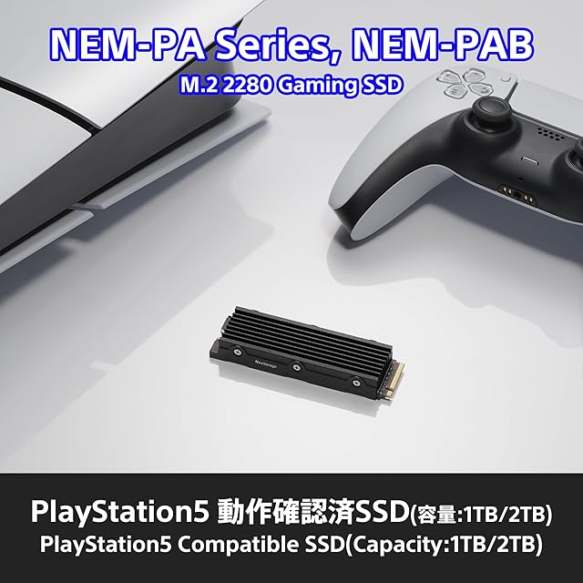 Nextorage NEM-PAシリーズ NEM-PAB|M.2 2280 PCIe 4.0 NVMe Gaming SSDは、ソニー20年のメモリストレージの歴史を受け継ぐ技術者とスタッフによって作られた日本メーカー「Nextorage」によって作られた内蔵SSDです。製品をご購入後5年間の製品と国内サポートに対応しているため、安心してご購入いただくことができます。本製品は機能のテストに加え、出荷前に当社規定の高温環境下で全領域での書き込み/読み出しテストを実施済です。蓄積した技術による省電力効果で、消費電力の作成と共にに温度抑制し、ロード時間の短縮や途切れないプレイ体験が可能になり、より快適なゲーミング環境を提供します。PS5 / PS5 Pro 動作確認済み。