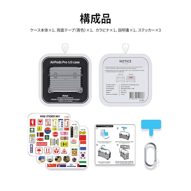 商品名:miak AirPods Pro (第2世代/第1世代)ケース カバー キャリーケース [ ハードケース スピーカーホール LED表示対応 ]