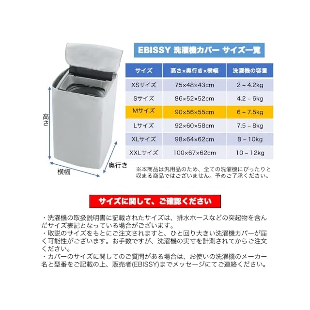 仕様 : ファスナー(ジッパー)開閉式 4面すっぽり囲い / Mサイズ : (約) 高さ90cm×奥行き56cm×横幅55cm / 洗濯機の容量 : 6-7.5kg