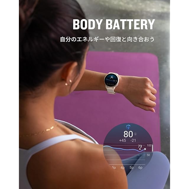 【スマートウォッチで自分を知ろう】心拍数やストレス計測、日々の体力が測定できるBodyBattery機能を搭載。お昼寝時間を検出可能になって、BodyBatteryの回復が反映されます。 自分を知ることで、より健康に、スマートに。
