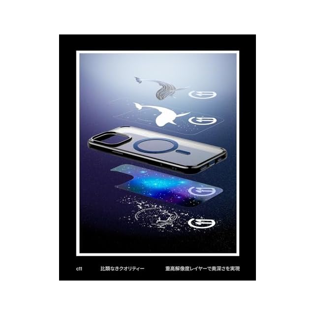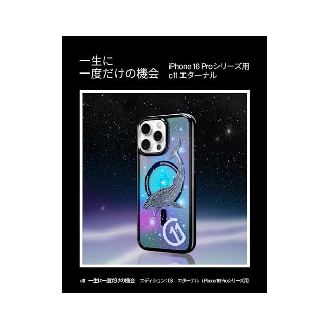【限定品:c11 マンスリー・エディション】繊細で立体的なヘキサレイヤーのプリントでデザイン性の高いケースに仕上げました。果てしない宇宙を遊泳するクジラで、永遠なる希望と生命力を表した逸品です。