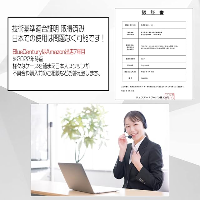 商品名:BLUE CENTURY 国内メーカー ブルーセンチュリー 特定小電力 トランシーバー BC-21 & 耳掛けイヤホンマイク ベルトクリップ 付属 インカム 技適マーク有 総務省技術基準適合商品 (2台セット)