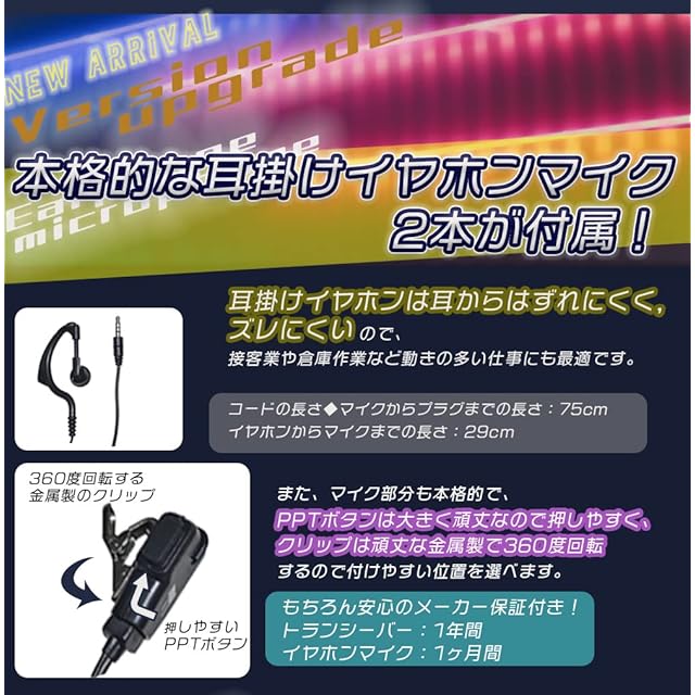【総務省技術基準適合商品・総務省の厳しい審査を合格した安心の技適マーク取得商品!】耳掛けイヤホンマイク、ベルトクリップも付属!