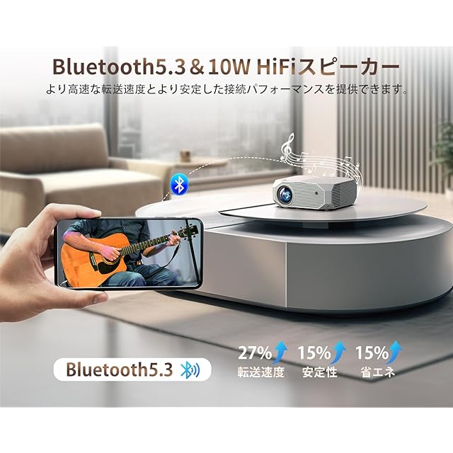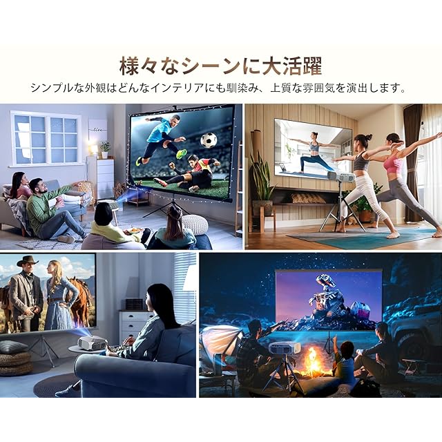 ✨【Bluetooth5.3搭載・10W HiFiスピーカー内蔵】向上した10Wサウンドにより、本体だけでも明瞭で大迫力の音を生み出す、ステレオのセパレーションも良くそれなりに臨場感も感じられ、高音質をお楽しみいただけます。✅ホームプロジェクターはBluetooth5.3も搭載し、ワイヤレスイヤホン、Bluetoothスピーカーなどの外部機器と接続する場合、実際の映画館で映画を見ているような臨場感のある視聴体験を実現します。この一台があれば、いつでも手軽に映画やドラマが楽しめるほか、部屋の雰囲気を変えるインテリアコンテンツ、家族また友人との時間をさらに楽しくすることができます。また、プロジェクターの背面にはネジ穴があるので、天井から吊るしたり、三脚スタンドを使ったり、卓上に置いたりして、投影スペースを有効活用することができます。
