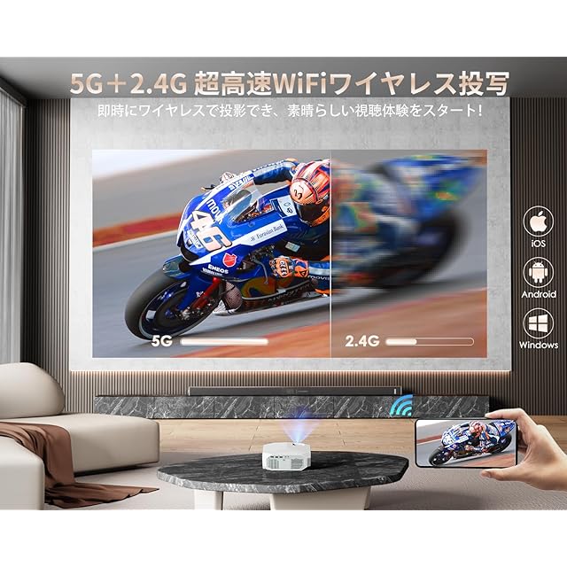 商品名:YOWHICK プロジェクター 家庭用 小型 【1080Pネイティブ解像度4K対応・天井投影可能】 28000LM高輝度 Bluetooth5.3搭載 5G+2.4GWiFi HiFiスピーカー内蔵 300インチ大画面 軽量携帯式50%ズームプロジェクター 天井 パソコン/スマホ/TV Stick/PS4/DVDプレイヤー接続可能 天井吊り可 3年