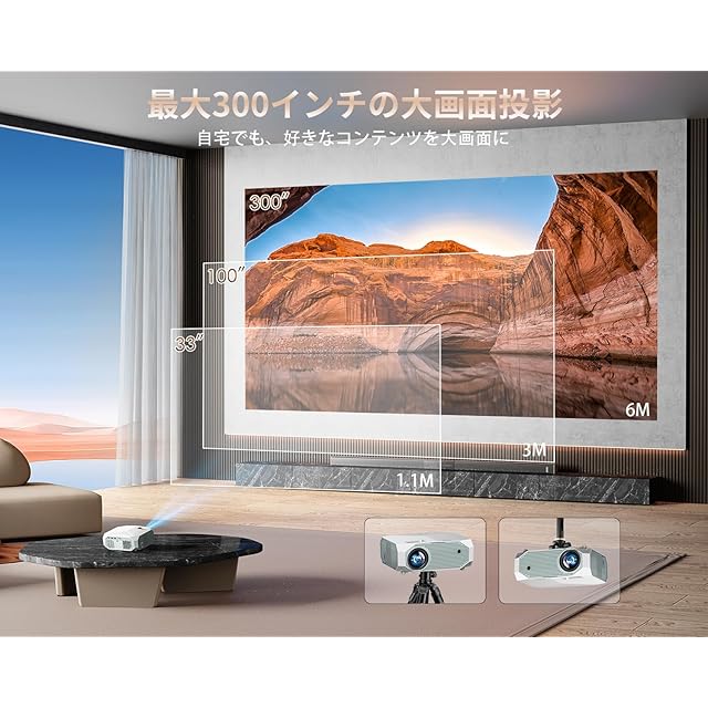 ✨【300インチ投影大画面・50%ズーム機能・ランプ寿命80000H】ホームプロジェクターの投射距離は1.1mから6mの投射距離で、投影サイズは33~300インチの画面が映し出せます。投影場所に応じて自由に調整できます。(推奨投影距離は1.5m~2.6m、暗所での使用をおすすめします)✅また、画面縮小機能があり、リモコンで画面サイズを50~100%に調整できます。✅台形補正機能を搭載しており、手動でピントを調整して、縦に±15度の調整を簡単に行えます。省エネ技術を採用され、LEDランプの使用寿命を80000時間まで延長することができます。