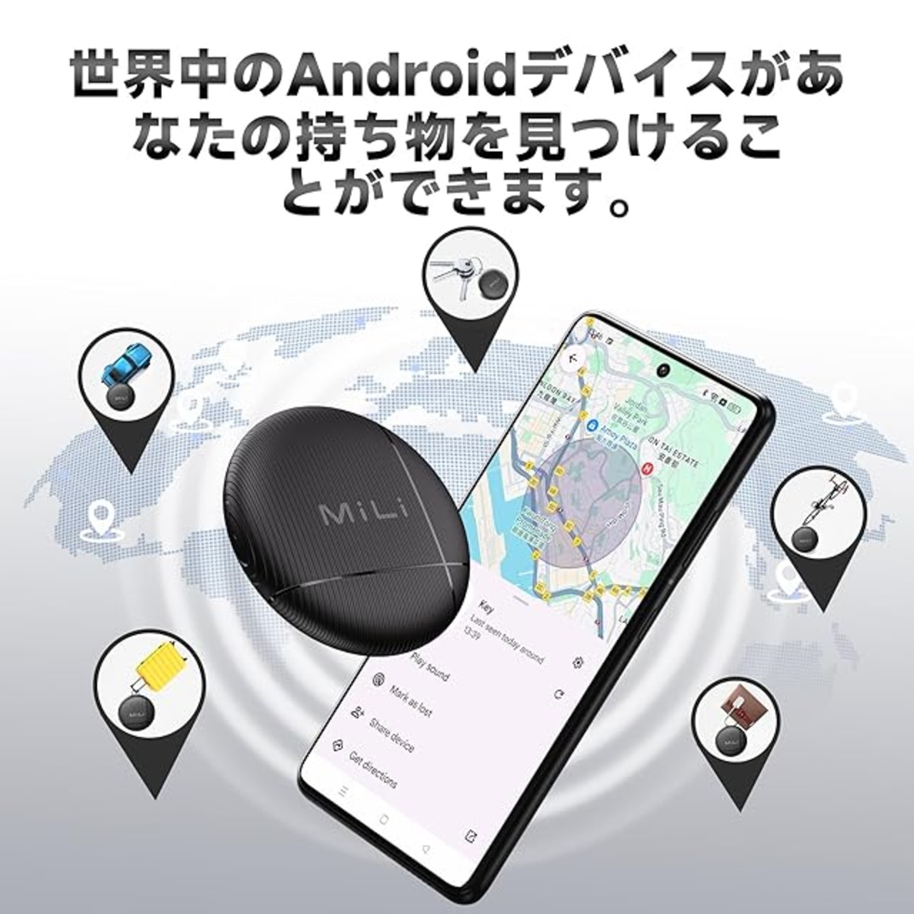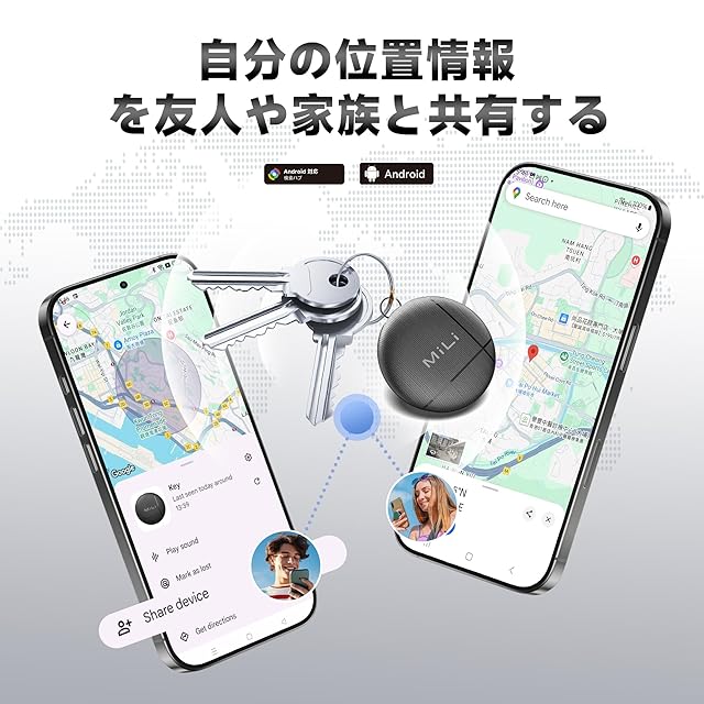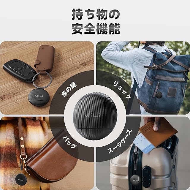 <b>MiLi キーファインダー/アイテムロケーター/Bluetoothトラッカー(Android用)</b><br><br> <b>主な特徴:</b><br> <b>Androidトラッキングタグ:</b> LiTag AndroidはBluetoothアイテムファインダーで、鍵のファインダー、財布のファインダー、荷物トラッカーなどとして使用でき、貴重品を追跡するのに役立ちます。<br> <b>Androidデバイス専用:</b> MiLiのAndroid版Bluetoothトラッカーは、Android 9以上のバージョンの“Googleの Find Hub”アプリにのみ対応しています。<br> <b>音付きトラッキングタグ:</b> Bluetooth範囲内でアイテムを探すとき、“Googleの Find Hub”アプリで音を鳴らしてアイテムを簡単に見つけることができます。<br> <b>安全な共有:</b> アイテムの位置情報を他の人と共有できますが、データの安全性はされています。“Googleの Find Hub”ネットワークは暗号化され、匿名で、位置データや履歴は保存されず、Googleに知られることはありません。<br> <b>IP67防水:</b> 水の飛沫、雨の日、または偶発的な浸水にも問題ありません。このアイテムロケーターは、1メートルの深さで最大30分間耐えることができます。<br> <b>交換可能なバッテリー:</b> このアイテムファインダーには交換可能なバッテリーが付属しており、最大12ヶ月使用可能です。バッテリー状態は“Googleの Find Hub”アプリで確認でき、適時交換してトラッキングタグを常にアクティブに保つことができます。<br> <b>プライバシー保護:</b> “Googleの Find Hub”ネットワークとの通信はすべて匿名で暗号化されます。GPSトラッカーの位置情報や履歴は決してキーファインダータグに保存されません。プライバシーはしっかりと保護されています。<br><br> <b>箱の中身:</b><br> MiLiアイテムファインダー x 4<br> キーチェーン x 4<br> ユーザーマニュアル