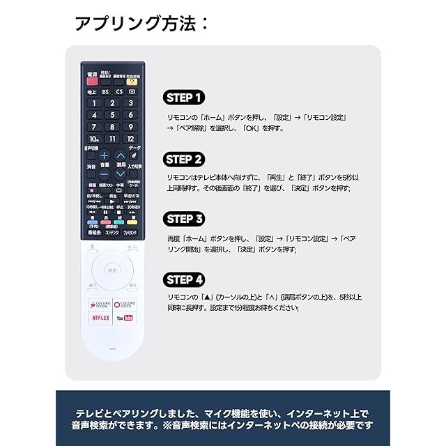 【交換用リモコン】4T-C40BJ1 4T-C45BL1 4T-C45BN1 4T-C50BL1 4T-C50BN1 4T-C55BL1 4T-C60BN1 4T-C70BN1 8T-C60BW1 8T-C70BW1対応