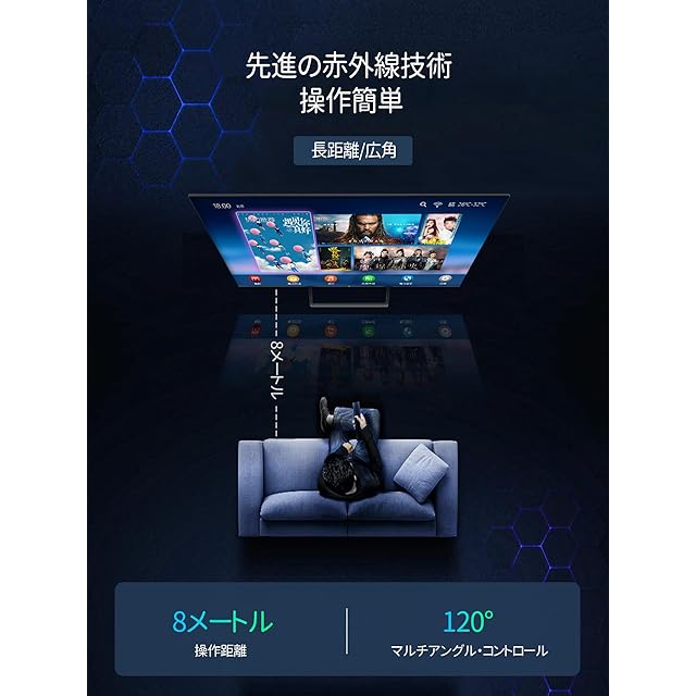 【長距離・広範囲で使用可能】強力な広角赤外線を搭載し、操作距離は約8メートル、左右の制御可能角度は約120度です。 距離や角度に制限されず、部屋の隅々からでも簡単に操作できます。