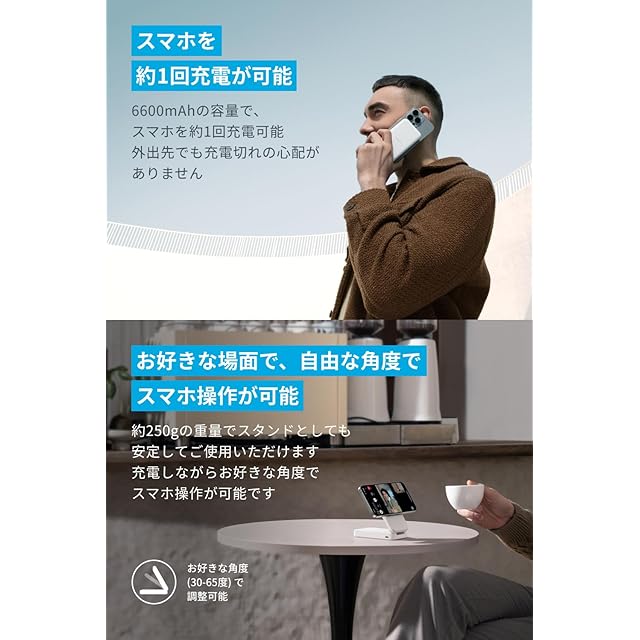 お好きな場面で、自由な角度でスマホ操作が可能:スタンド型としてご使用いただけるため、充電しながらお好きな角度でスマホ操作が可能です。