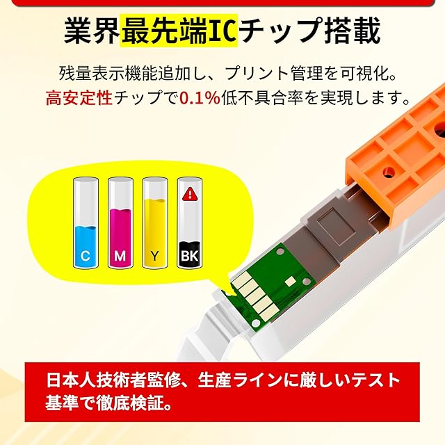 【日本製高品質インク採用】純正 品と同じ安定した高画質プリントを確保できます。日本製ハイクオリティ、不具合率2%以下。