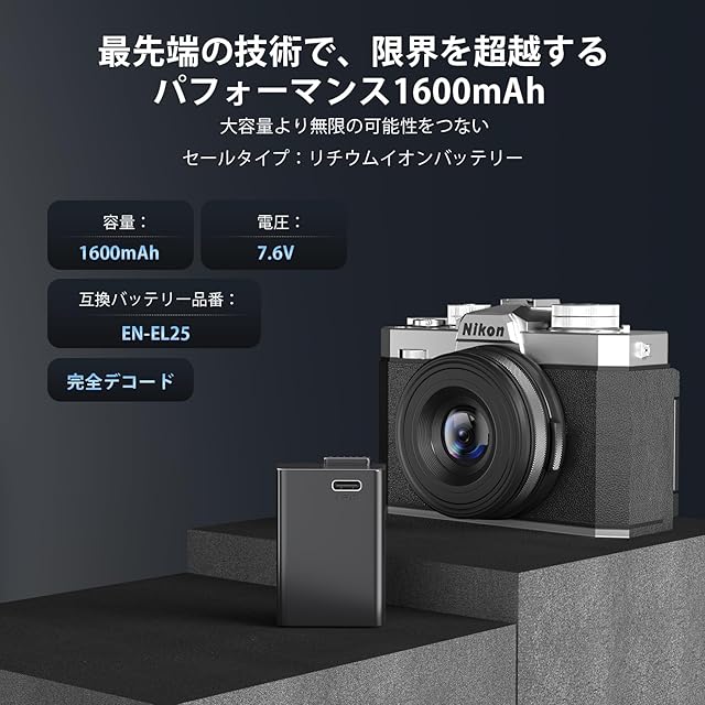 商品名:EN-EL25 バッテリー1600mAh 大容量 Nikonミラーレス一眼Z50,Z30,Zfc用バッテリー EN-EL25 直接充電カメラ用バッテリーパック