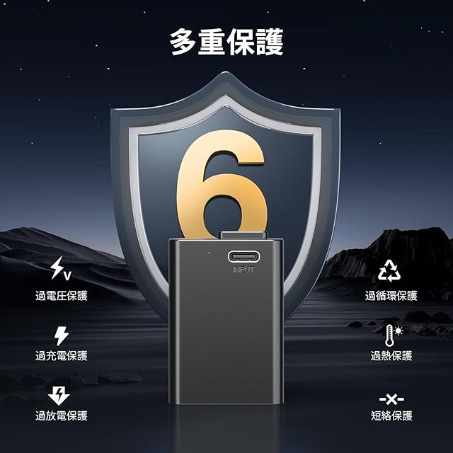 【保護機能】:過電流保護、過充電防止、過放電防止、短絡、高温、サージ保護、の多重保護システム機能が内蔵されるので、安心してご利用いただけます。