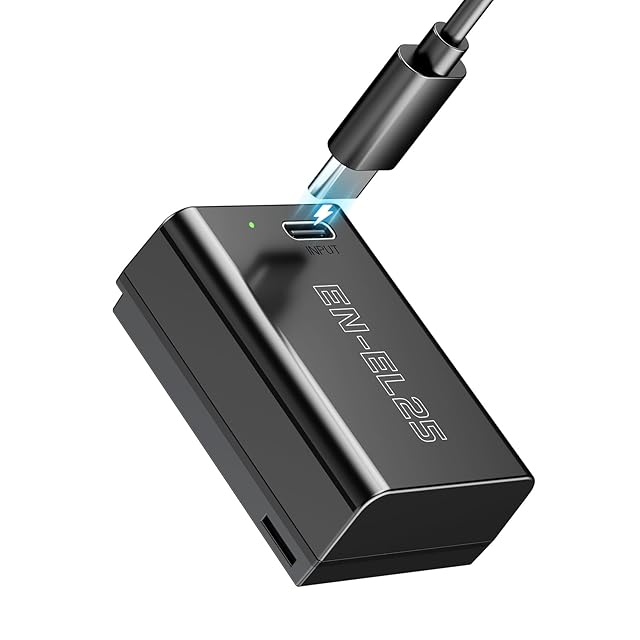 【便利な充電方式】:EN-EL25バッテリーはUSB Type-C充電ポートが搭載されており、モバイルバッテリーからも、コンセントから、ソラーチャージャーからもお手軽くバッテリーパックを充電可能で、旅行やハイキングに最適、充電器持ち運び必要がない、1600mAh 7.6V 12.16Whの強力な容量を持つEN-EL25互換バッテリーは長いビデオ制作や写真プロジェクトのための長寿命の高品質リチウムバッテリーであり、メモリー効果がなく、安定したバッテリー寿命を提供します。
