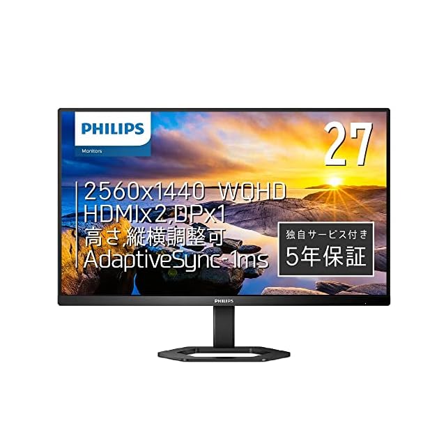 商品名:PHILIPS 液晶ディスプレイ PCモニター 27E1N5500E/11 (27インチ/5年/WQHD/IPS/HDMI,Display Port/高さ調整/チルト/ピボット/フレームレス/Adaptive Sync/ちらつき防止/ブルーライト軽減)