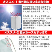 全自動洗濯機を紫外線や雨、雪、ホコリなどからしっかり守る防水加工済(生活防水)の4面すっぽり仕様の洗濯機カバーです。表面にシルバーコーティングを施しておりますので、紫外線に強い商品となっております。 洗濯機カバー上部の開閉部分は、厚手生地(表面:シルバーコーティング/裏面:PVCコーティング)を採用し、より丈夫な洗濯機カバーに仕上げました。 給水ホースを脱着し、カバーを洗濯機の上から被せて、本体背面のひもを結ぶだけで簡単に装着できます。