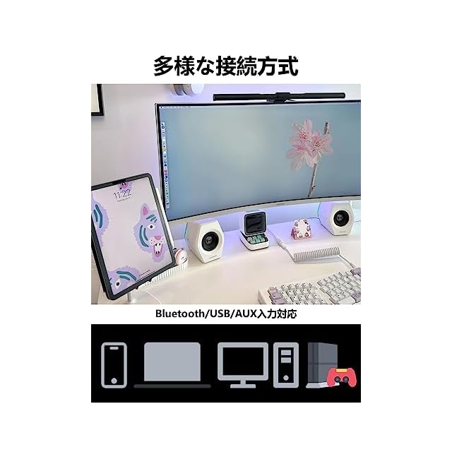 多機種対応 ×3 接続方式!ゲーマーのデスクを統合: 10.6×10.5×13cm のコンパクトサイズで、PC モニター / PS5/Switch の傍らにスムーズ配置。Bluetooth/USB/3.5mm AUX の 3 接続により、ゲーム主機からスマホまで瞬時にペアリング可能。多彩な環境での使い勝手を追求します。