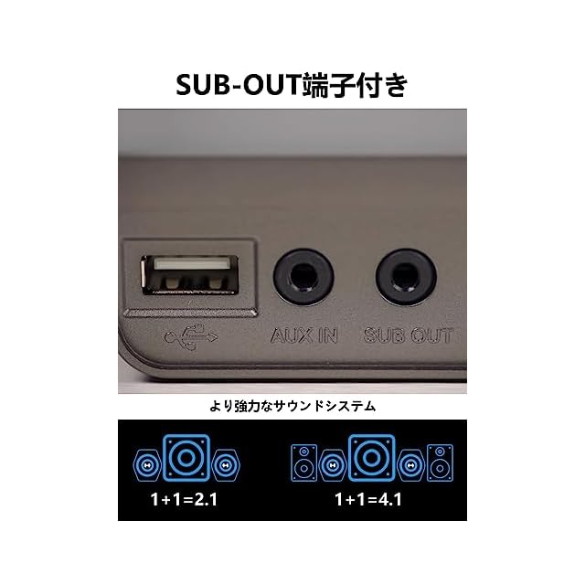 SUB-OUT 端子搭載!拡張性豊富なサラウンド構築: 専用 SUB-OUT 端子により、2.0/2.1/5.1 スピーカーやサブウーファーと接続可能。2.1/4.0/4.1/7.1 サラウンドシステムを簡単に構築し、ゲーム / 映画の音の細部を引き出し、臨場感を飛躍的に向上させます。