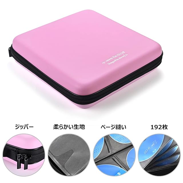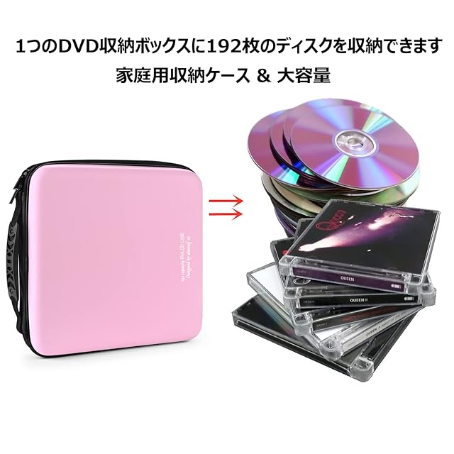 商品名:LIOVODE 192枚収納 CDケースポータブルEVA blu-ray ディスク収納ケース 大容量 DVD/VCD 収納 (192枚, ピンク192)