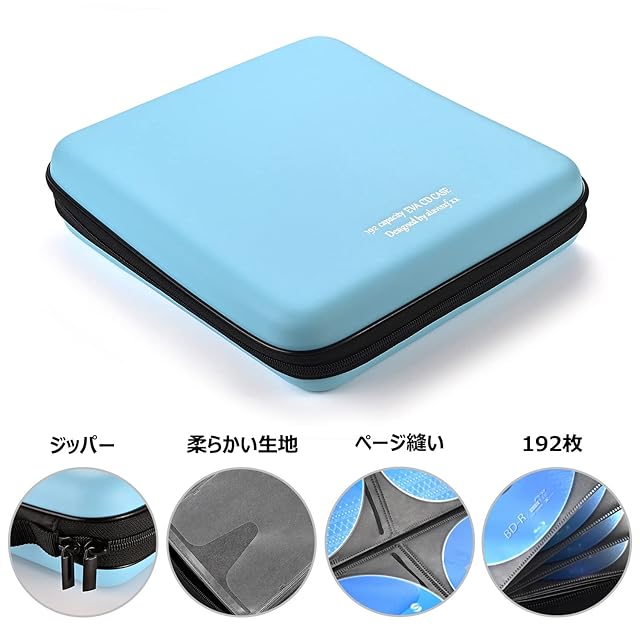 LIOVODE 192枚収納 CDケースポータブルEVA blu-ray ディスク収納ケース 大容量 DVD/VCD 収納 (192枚, スカイブルー192) | TREND DESIGN 家電専門店