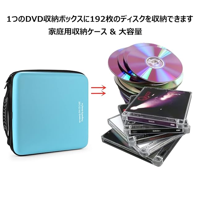 商品名:LIOVODE 192枚収納 CDケースポータブルEVA blu-ray ディスク収納ケース 大容量 DVD/VCD 収納 (192枚, スカイブルー192)