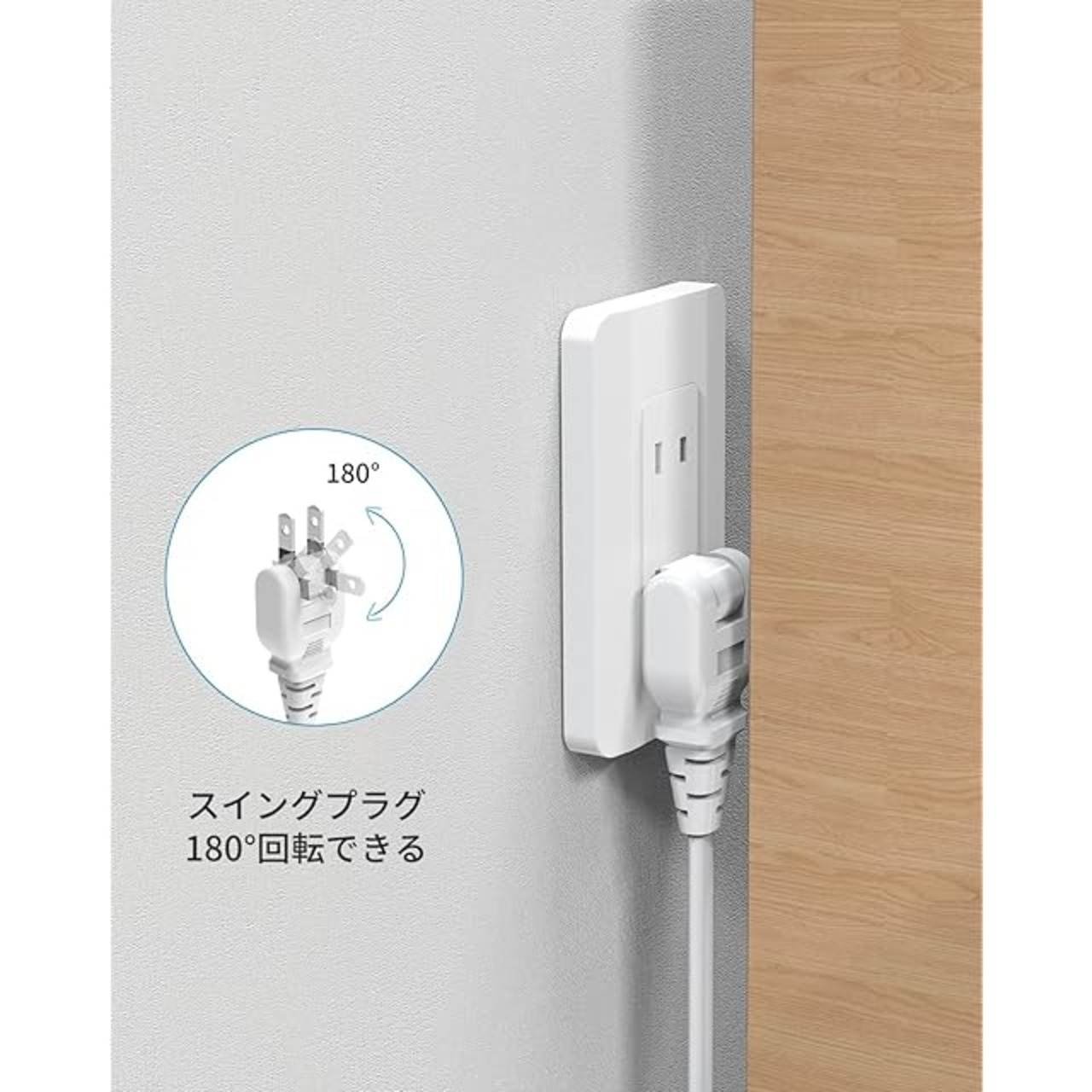 【干渉しない・スイングプラグ】2面にはAC差込口が4口ずつあり、間隔が広めなので、干渉することなくすっきりとしています。スイングプラグは180°回転できるので、狭いスペースでも配線しやすいです。