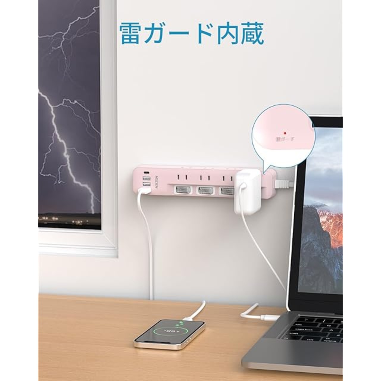 Mscien 電源タップ usb付き 8個AC口 1個usbc 3個usba 延長コード 2m 雷ガード usb コンセント oa スイッチ付き 壁掛け たこあしコンセント テーブルタップ マルチタップ スイングプラグ おしゃれ ピンク 可愛い | TREND DESIGN 家電専門店