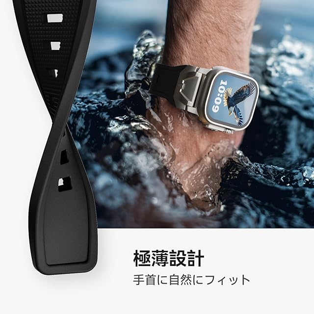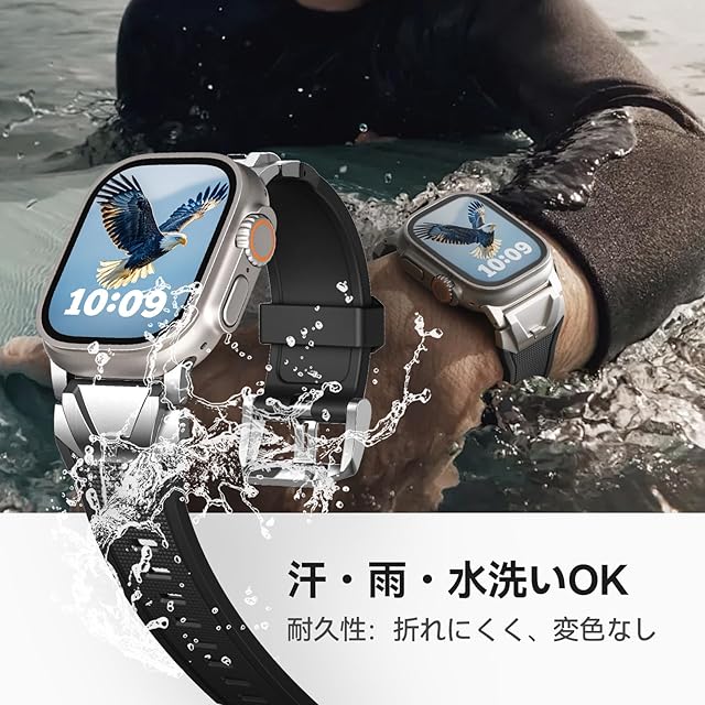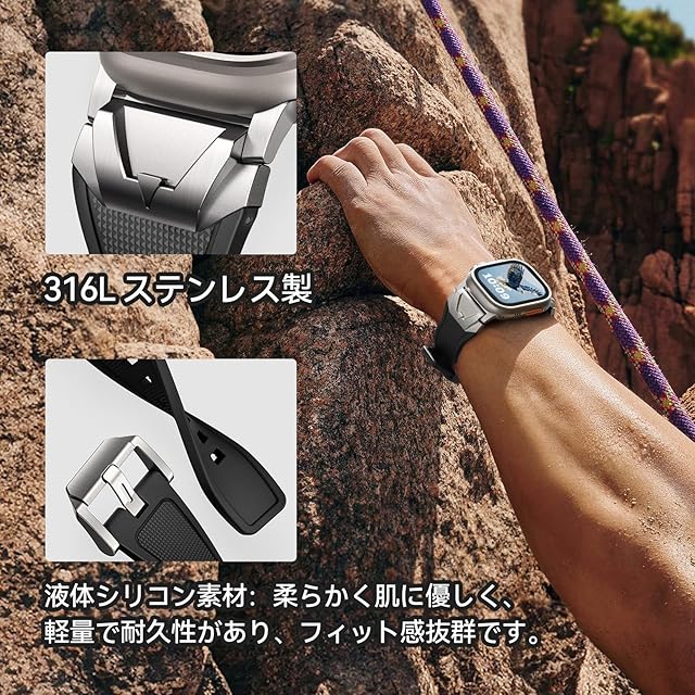 【対応機種】本製品「アップルウォッチ ステンレス+液态硅胶(リキッドシリコーン)バンド」は、コンパチブルApple Watch ウルトラ2/1 およびSeries 10/9/8/7/6/5/4/SE2/SE/6/5/4/3/2/1に対応しており。対応する手首サイズは135mmから220mmです。ご注意:購入前に、Watchのモデルとサイズを確認してください。