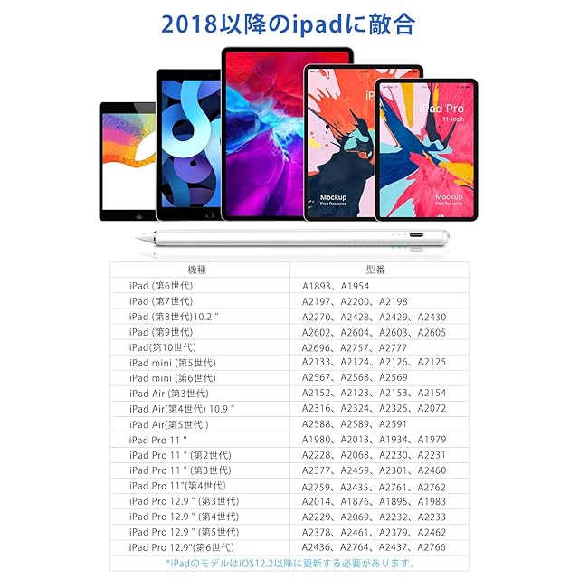 【2018年以降のiPad専用タッチペン】対応機種:iPad (第6/7/8/9/10世代)、iPad Pro 12.9” (第3/4/5/6世代) 、iPad Pro 11”、iPad Air (第3/4/5世代) 、iPad mini (第5/6世代)。(iPadモデルをiOS12.2以降に更新する必要があります。)★iPhoneやAndroidなどのスマートフォンはご利用いただけません!★サイズ:ペン本体長さ:172mm;ペン管直径:9mm;ペン先:1.0mm;重量:16.2g。パッケージ内容:タッチペン*1、交換用ペン先*3、Type-c充電ケーブル*1、収納ケース*1、日本語取扱説明書*1 .