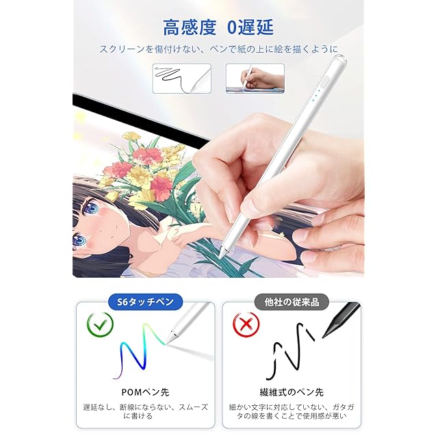 【第3世代POMペン先&遅延なしiPad ペン】旧モデルの金属ペン先はiPadの画面を傷つけ、炭素ペン先の感度が低いが、数回のアップグレードを経た第3世代POMペン先はこれらの欠陥を完璧に解決し、Apple Pencilとほぼ同レベルの体験を実現した。ペン先の感触は正確で、書き心地は滑らかで、本格的に0遅延を実現した。優れた耐久性、1万回の筆記テスト、10万回の摩擦テストに耐えることができ、職業の絵を描く人やiPadを頻繁に使ってノートを取る必要がある学生たちに最適です。