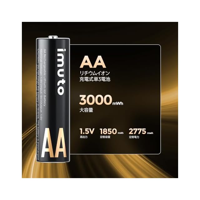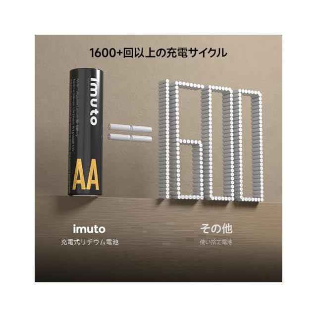 商品名:imuto 充電池 リチウム充電式電池 単3形 3000mWh 8本入り くり返し回数1600回