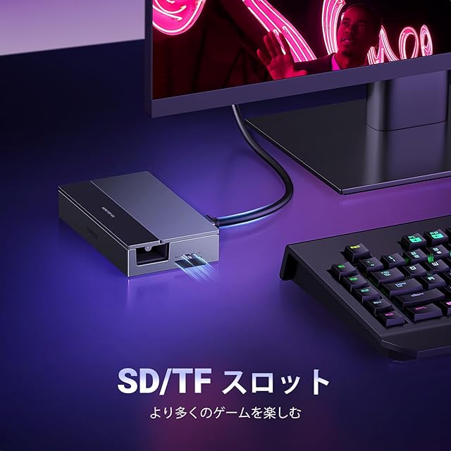 【10Gbps高速転送】: このSteam deck/Switch用ドックには、10Gbpsの転送速度を備えて、USB 3.2 Gen 2ポート(1A1C)を搭載します。 外付けモバイルハードドライブとUSBフラッシュドライブをサポートし、ゲームファイルを高速で転送だけでなく、 キーボード、マウス、ゲームパッド レシーバーなどの接続も対応し、また、遅延や干渉を効果的に軽減します。その上、TF/SDに対応のインタフェースを搭載します。