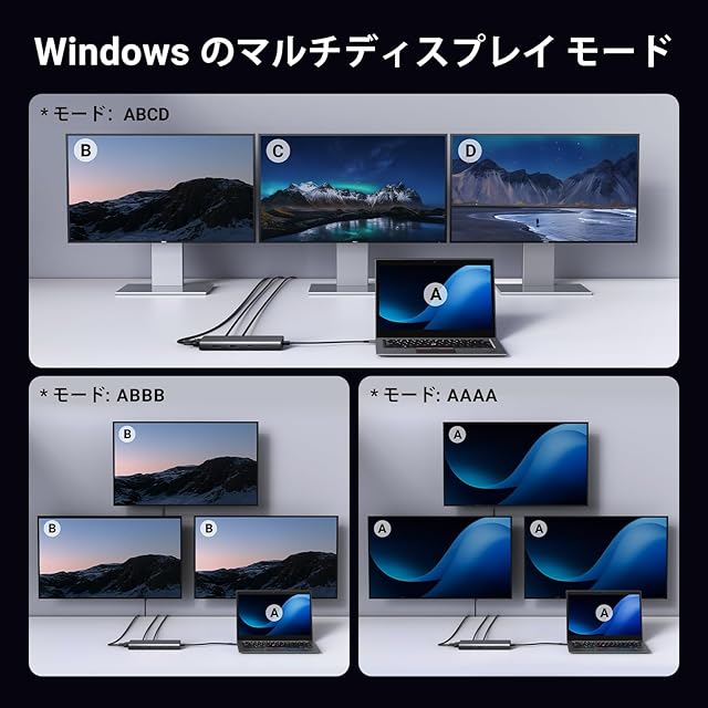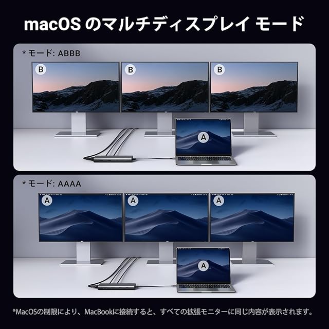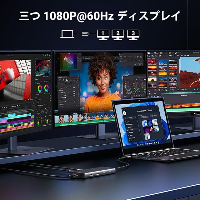 トリプル モニター ディスプレイ: このトリプル ディスプレイ ドックは、最大 4K のトリプル スクリーン ディスプレイをサポートします。シングル (HDMI 1) で最大 4K@60Hz をサポートします (注: MacBook はミラーリング モードのみをサポートします)