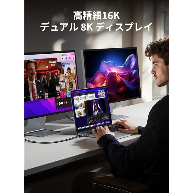 【驚きの画質!16K/8K超精細映像出力ケーブル】USB4 Gen4ケーブルは最新DP2.1プロトコルに対応し、インテリジェント帯域幅分配技術により、単一画面16K@60Hzまたはトリプル4K@144Hzのマルチディスプレイ環境を構築可能です。デイジーチェーン(MST)機能を備え、1本のケーブルでプロ仕様のマルチスクリーンワークステーションを実現できるのタイプcケールです!映像編集、3Dレンダリングなどクリエイティブ作業に適しているの映像出力ケーブルです。