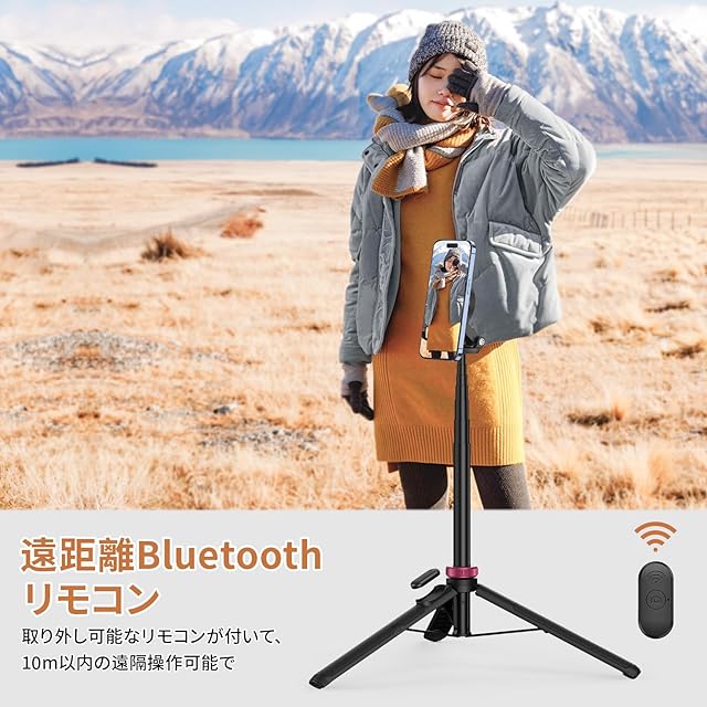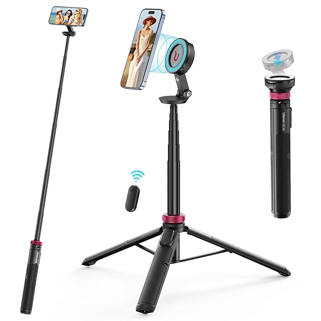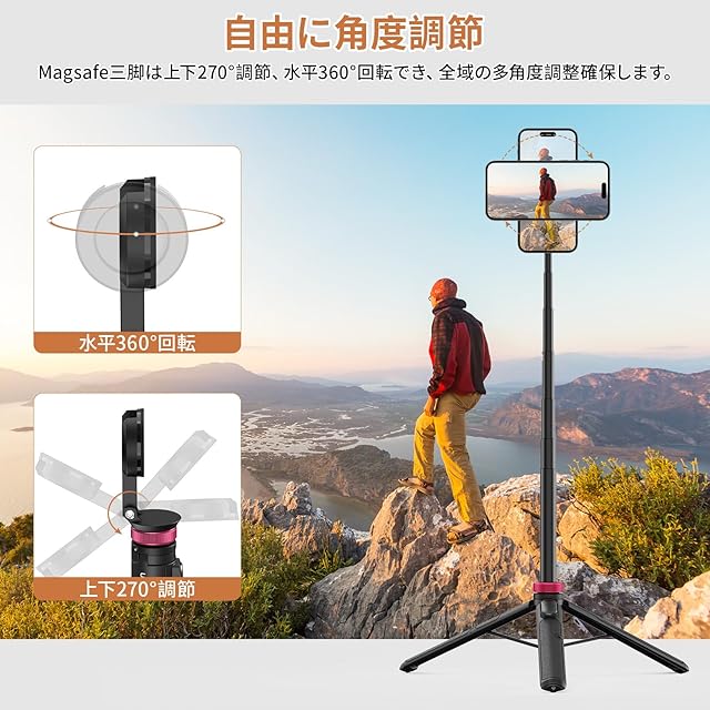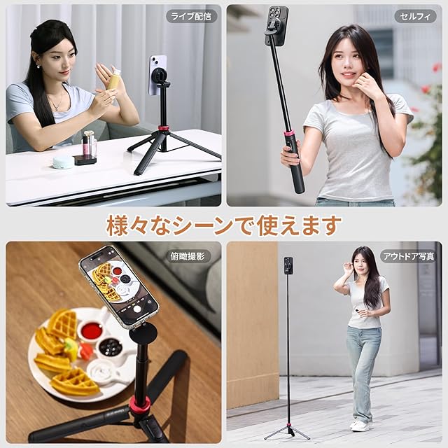 商品名:Ulanzi MT-84 自撮り棒 三脚 Magasfe対応【2024年新型・磁気マグネット】153cm 6段階伸縮 片手操作 遠隔リモコン付き 360°+270°角度調節 スマホ 三脚スタンド じどりぼう iPhone 対応 セルカ棒 軽量 コンパクト 旅行/セルフィー/生放送/撮影録画などに最適