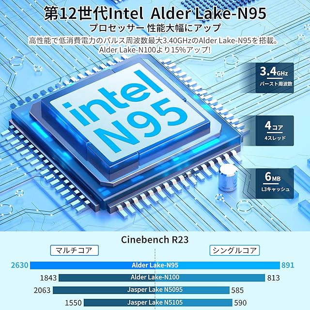 1.【最新の第12世代 Alder Lake CPU n95 ミニpc+ミニpc windows11搭載】高性能で低消費電力のパルス周波数最大3.40GHzのAlder Lake-N95(6Mキャッシュ、4コア4スレッド)を搭載。Alder Lake-n100 ミニpcより15%アップ!非常にパワフルなミニ PC は、ホーム サーバー、学校教育、Web ブラウジング、ビジネス オフィス、ビルボードなど、より要求の厳しいニーズを満たすのに十分です。従来のミニpcの不安定な動作、ブルー スクリーン、もっさり感フリーズする現象に別れを告げましょう。より高速的な応答性とスムーズな操作性を得ます。●本mini pcは最新版のオペレーティングシステム「Windows11」をインストールされております。わざわざ更新する手間が必要なし、製品到着後、すぐに使用できております。