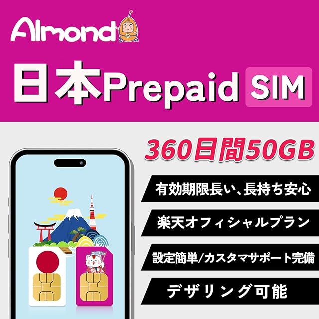 商品名:日本 プリペイド SIM 360日間 50GB 大容量 Rakuten 5G 4G LTE 対応 プリペイドSIMカード 日本国内用 SIMカード Rakuten Prepaid SIM プリペイド データ専用 Japan Prepaid SIM 360Days 5G 4G LTE Card Data-Only (360日間50GB)