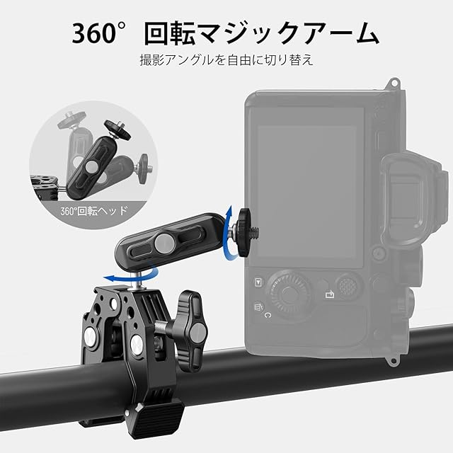 【柔軟な角度調整】2つの360°回転可能なボールヘッドにより、3"/7.62cmのマジックアームはあらゆる角度から位置を変えることができ、最適な撮影の柔軟性を実現します。ネジノブにより、ボールヘッド素早く簡単に固定できます。