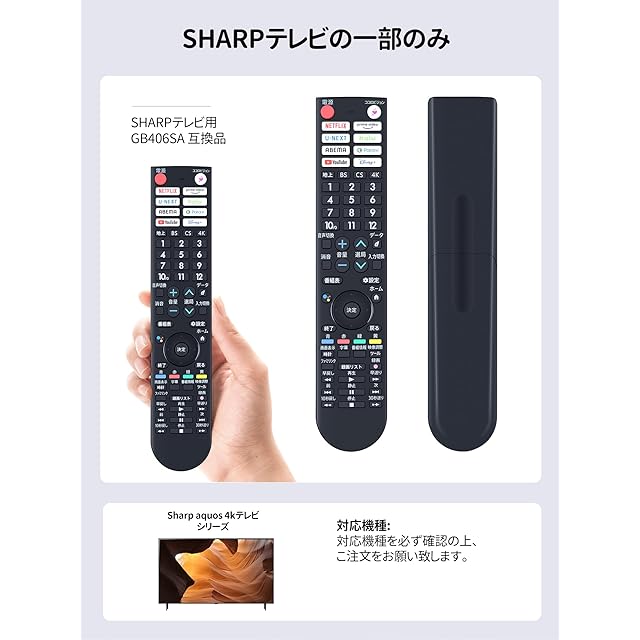 【簡易リモコン】本製品は、SHARP製リモコンの紛失や無反応(無効)などの故障による交換品、代替品、予備品としてご使用いただけます。 電池と説明書は付属していません。 リモコンの設定方法は、テレビの説明書を参照するか、メーカーにお問い合わせください。