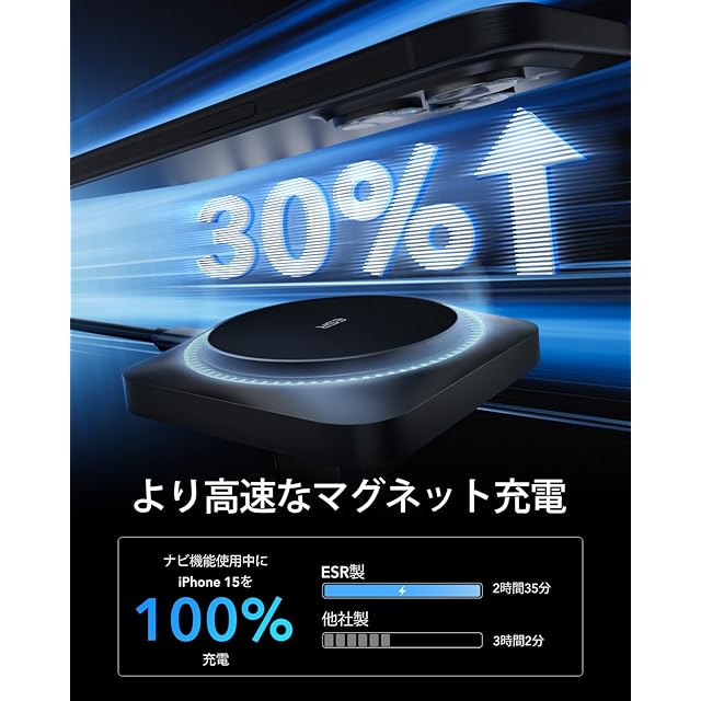 【高速magsafe充電】そのまま磁気ワイヤレス車載充電器に装着して充電することができます。他のmagsafe 車載よりもナビ中のスマホを速く充電することができます。