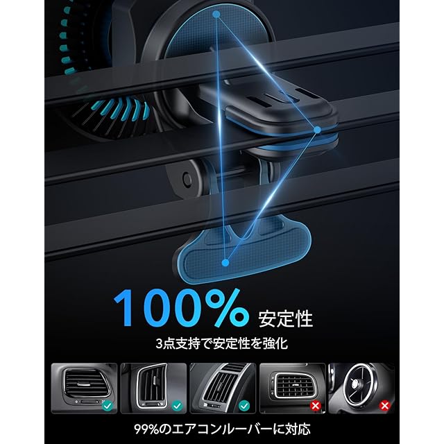 【ナビ使用に対応】フルリング磁石と調整可能なボールジョイントにより、幅広い角度と方向からアクセスでき、常に最も快適なビューを体験できます。ご注意:この製品は主に横向きの羽根、縦向きの羽根、および異形のエアコン通風口に適しています。格子型や扇型のエアコン通風口には対応していません。