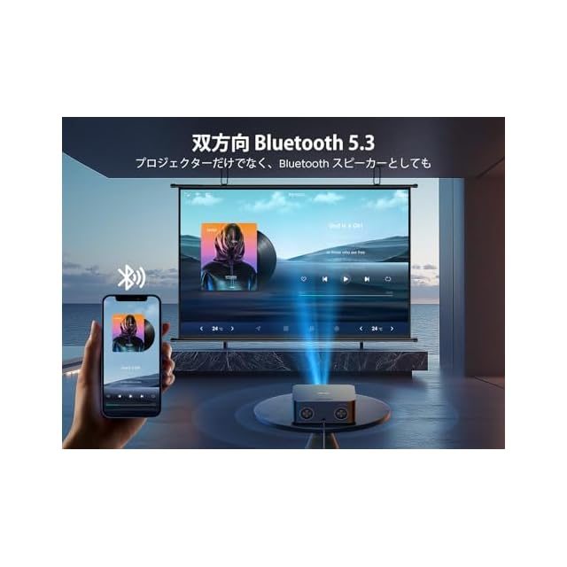 【高速WiFi6 | 双方向Bluetooth 5.3スマホと接続可能!】WiFiプロジェクターはWiFi6の採用により、データ転送速度が大幅に向上し、ストリーミングやオンラインコンテンツの視聴がより快適に行えます。映画や動画を高画質で観る際、遅延やバッファリングの心配を無くし、ストレスフリーで視聴できる環境を提供します。特に、複数のデバイスが接続されている場合でも、安定した接続が維持されるため、家庭内での同時視聴も問題ありません。双方向Bluetooth 5.3プロジェクターを投影だけでなくBluetoothスピーカーとしても使用できます。